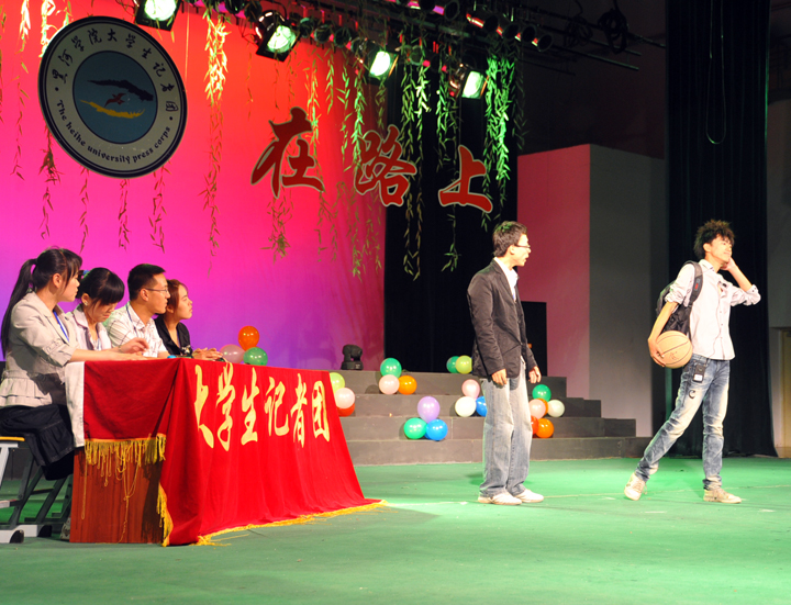话剧由第五届大学生记者团成员创作并自编、自导、自演,讲述了五年来大学生记者团从成立、成长到成熟的历程。话剧共分“纳新”、“工作”、“活动”、“惜别”四幕。整场演出没有炫目的灯光,也没有华丽的舞台和光鲜亮丽的服装,演员们用自己的真情实感打动了在场所有的观众。丝丝入扣的情节,不时引来观众的掌声与欢呼声,师生们都沉浸在浓浓的话剧情节里。在第三幕的演出中,记者团成员为现场观众送上了青春律动的健美操、动感十足的街舞、声音醇厚的吉他弹唱、优美动听的歌曲串烧等,将演出推向了高潮。