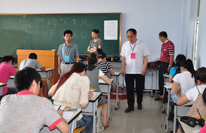 本网讯(记者 姜辉)6月18日,全国大学外语四、六级考试如期进行。上午9时,我校副校长宋立权和省、市招考办巡视组一行2人在校办、宣传部、教务处、保卫处(武装部)、后勤管理处等相关部门负责同志的陪同下亲临考试现场指导检查考试工作。