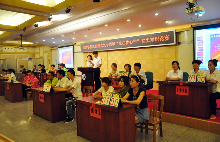 本网讯(记者 王佳)为纪念中国共产党建党90周年,进一步加深全校师生对党的历史、党的知识、党的理论和路线方针的认识,激发师生们的爱党爱国热情。6月27日,作为学校庆祝建党90周年系列活动之一,“党在我心中”党史知识竞赛决赛在综合楼五楼多功能厅成功举行。知识竞赛由学校组织部、宣传统战部、学工部、团委主办,历史文化旅游系党总支承办。来自全校近二百余名师生现场观摩了比赛。