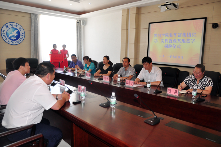 工会主席李廷栋在签字揭牌仪式上强调,黑河华富商城是集百货、量贩超市、食品广场、家居广场、餐饮广场、娱乐为一体的综合性购物中心,是我市最大的商品集散地之一。校企合作可以补充学校相应专业在试验教学方面的不足,实习、实训、科研基地的建立进一步拓展了学校实践教学空间,是培养学生实践应用能力的重要途径,也是提高学校人才培养质量的有效方式。双方将进一步加强联系,走优势互补、互利双赢、共同发展之路。李主席指出,我校将以基地建设为契机,进一步完善服务地方的功能,努力培养一批适应社会主义现代化建设需要的应用型人才。