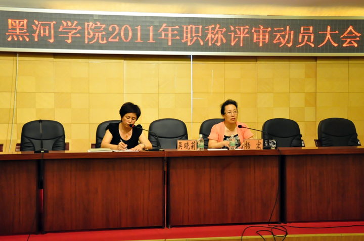 会上,人事处处长吴晓莉同志就省人社厅、省教育厅职称工作会议精神进行了传达并对《黑河学院2011年度专业技术职务任职资格评审工作实施方案》进行了解读。