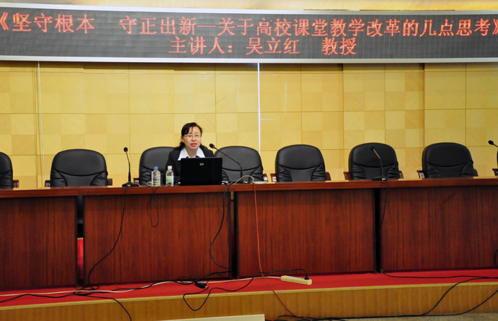 本次讲座由思想政治理论课教学科研部教授吴立红主讲,吴教授结合自身多年教学、研究、工作的实践经验,理论联系实际从更新教育理念、改革教学方法等几个层面,对如何提高高校课堂教学质量提出了一些颇有见解的方法和理念。