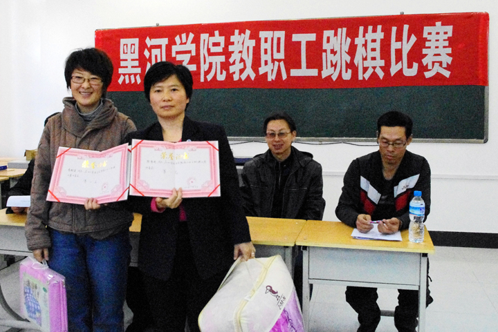 本次比赛由学院工会主办,棋类协会承办。比赛吸引了来自各系(中心)、各部门的35位女教职工参加了比赛。比赛采用三局两胜淘汰制,经过七轮激烈的角逐,来自理化系分工会的陈伟丽和美术系分工会的秦嗣英分别夺取了比赛的冠、亚军。学院工会副主席、棋类协会会长分别为获奖者颁发了获奖证书和奖品。