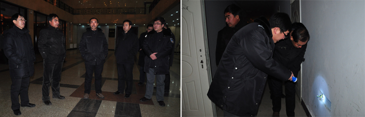 本网讯(记者 姜辉)期末来临之际,学院为使学生们有个良好的、安全的学习环境,进一步排查和杜绝校园寝室私接电源现象,12月2日晚10点30分,学院工会主席李廷栋带领学工部、保卫处、后勤管理处等部门负责人及行政值班人员,对学院二号楼、七号楼、九号楼进行了详细排查,就存在问题提出整改要求。