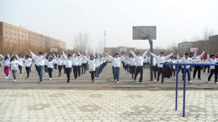 本网讯(通讯员 杨艳彦 摄影 王瑜)为贯彻落实中央7号文件精神,积极推进全民体育健身计划,吸引广大师生走出课堂,深入开展阳光体育活动,4月18日上午,美术系在校篮球场开展了阳光体育课间操活动。