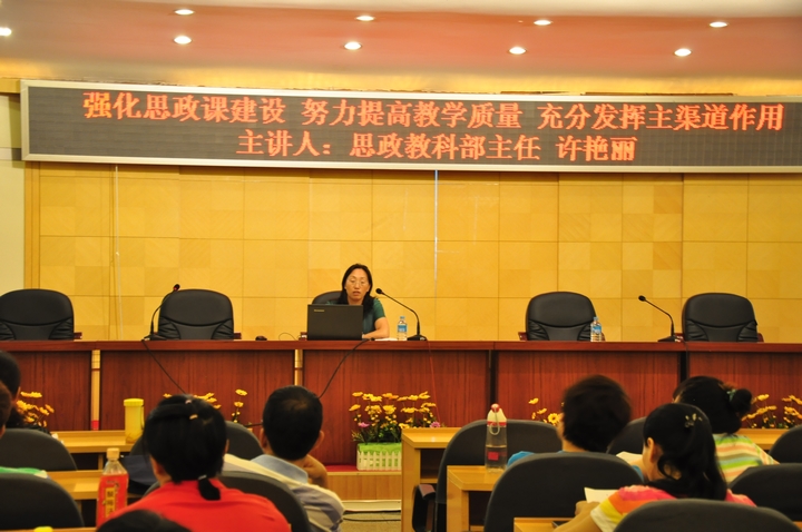 交流会上,学院思想政治理论课教学科研部许艳丽老师结合自身多年教学管理经验,从思政课建设的基本情况、具体要求和发展方向作了详细的阐述。本次交流会,加深了教师们对思政课建设工作的了解,促进了交流,达到了预期效果,为我院思想政治理论课建设奠定了良好的基础。
