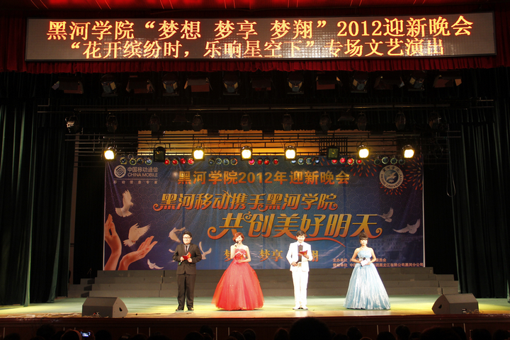 本网讯(通讯员 梁云婴)10月11日晚6点,由共青团黑河学院委员会主办、教育系、美术系、音乐系团总支联合承办“梦想 梦享 梦翔”2012迎新晚会第一场“花开缤纷时,乐响星空下”专场文艺演出在学院礼堂隆重举行。