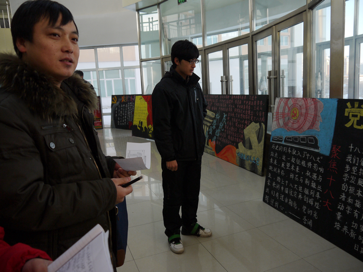 本网讯(通讯员 刘振涛)11月28日,由学院团委主办、俄语系团总支承办的“喜迎十八大,党在我心中”主题板报设计大赛在教学楼一楼大厅举行。