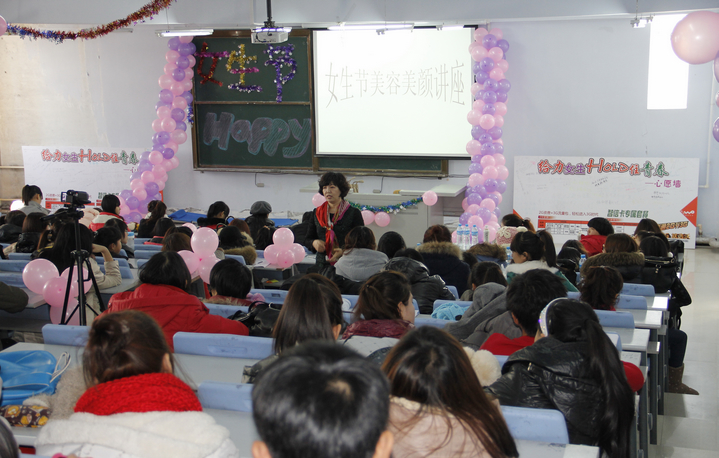 据悉,本届女生节共分三个部分,除文艺演出外,第一部分是祝福女生,学院400多名男同学在心愿墙上留下了真挚的话语;第二部分是举办讲座,学院团委邀请了我市具有24年美容经验的资深美容师董淑华女士为300余名女大学生进行了美容美颜知识讲座,讲座后许多女同学表示受益匪浅。