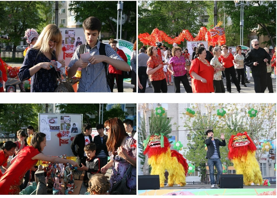 精彩纷呈的特色活动让各国市民从多个角度体验和了解了中国文化的魅力。其中,孔子学院教师现场展示的茶艺、剪纸、中国结制作等特色文化,成为中国文化展示的亮丽风景线。中国古典文化展览、饮食文化展品吸引众多外国朋友驻足欣赏。孔子学院学生不仅以中国歌曲、民族舞蹈的形式参加国际文化汇演,中国传统的舞龙、舞狮表演更是把整个广场活动推向了高潮。活动中,孔子学院教师还向广大市民发放了孔子学院宣传手册和纪念品。