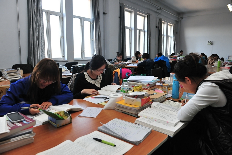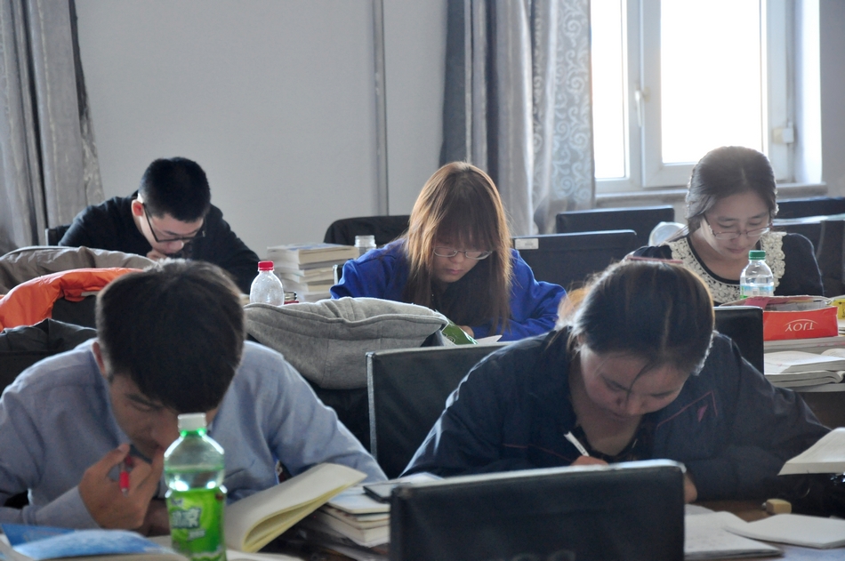 黑河学院2014年共有2200名毕业生,约有300名毕业生选择考研,10月31号下午,记者来到学院明德楼五楼自习室,看到自习室内同学们全神贯注、专心致志,全力以赴地复习考研,顿时让人感觉考研浓烈的竞争氛围。记者就考研的一些热点问题,随机采访了两名考研学生。中文系10级广播电视新闻专业的魏婷同学就是今年考研大军中的一员,她说:“考研考验的是学生的综合素质,对于今年的研究生考试不能说完全有信心,毕竟是与全国各高校的学生们一起竞争有限的名额,说实话,压力很大,想放弃考研,特别是每天拖着疲惫的身体回到寝室看见同寝的室友们上网、听歌日子过得很轻松、闲适的时候,不想自己弄得这么累,但是第二天早上还是依旧早起复习,不想半途而废,就算考不上也要尝试一下,不想让自己后悔!”