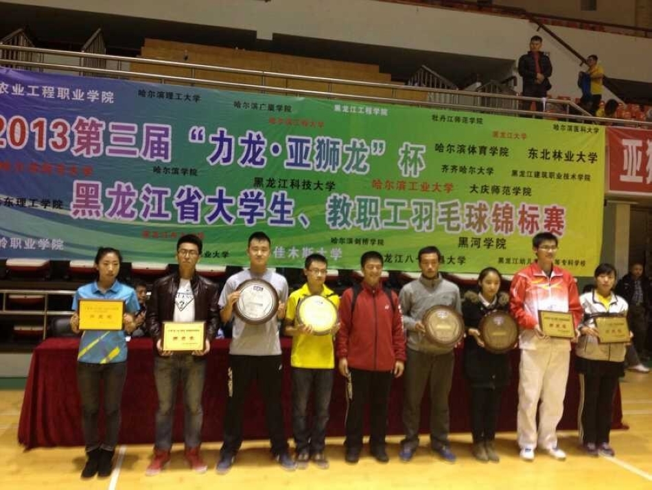 本网讯(特约记者马宝发)11月1日—3日,我院羽毛球代表队参加了由省大学生体育协会、省教育工会主办,哈尔滨工业大学承办的2013第三届“力龙•亚狮龙”杯黑龙江省大学生、教职工羽毛球锦标赛。共有近三十支队伍参加了本次比赛。
