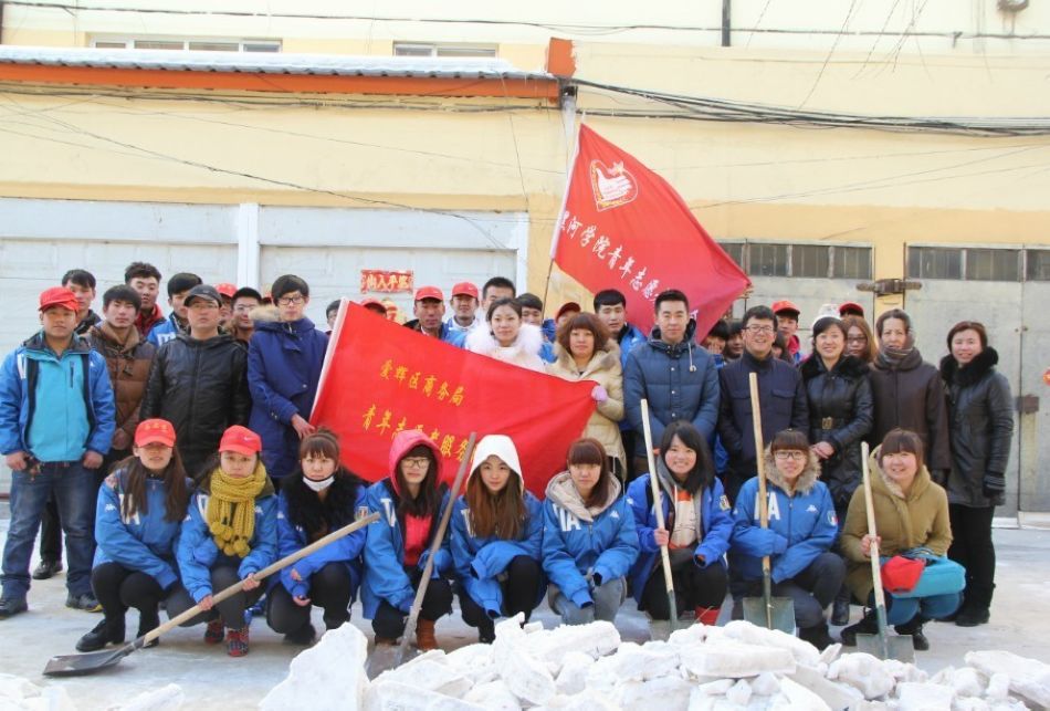 3月5日下午,黑河学院青年志愿者联合会38名志愿者,来到爱辉区鹿源春社区。由于路人和车辆的长期碾轧,让积雪变成了冰层,清理难度极大。但是,我院青年志愿者没有被困难吓倒,轮番上阵,干劲十足。经过大家1个多小时的共同努力,小区的路面被清理干净,为来往行人和车辆供了方便。看着积雪和冰层清理干净的道路,一位志愿者微笑着说:“我是90后的学生,从小到大,没吃过苦,参加志愿活动不仅帮助环卫工人减轻工作量,也培养了自己的坚强意志,当了一回‘雷锋’。”
