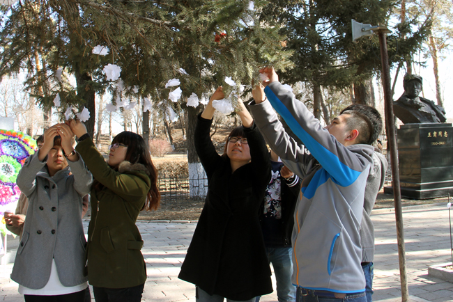 本网讯(特约记者 汲长伟)为缅怀革命先烈,弘扬爱国主义精神。4月1日,在清明节前夕,历史文化旅游系团总支积极与黑河市联通社区党总支合作,开展了“缅怀革命先烈,弘扬革命精神”清明扫墓活动。历史文化旅游系20余名志愿者以及联通街道社区干部、离退休党员、花园街卫生服务中心党员干部共计60余人来到“王肃墓”前缅怀革命烈士。