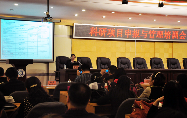 本网讯(特约记者 彭传怀)为加强科研项目管理,提高教师科研项目申报质量,提升科研项目中标率,4月9日下午,我院在明德楼五楼多功能厅召开了“科研项目申报与管理培训会”。会议由科研处项目科负责人主讲,各系(中心、部、所)教师一百余人参加了此次培训会。