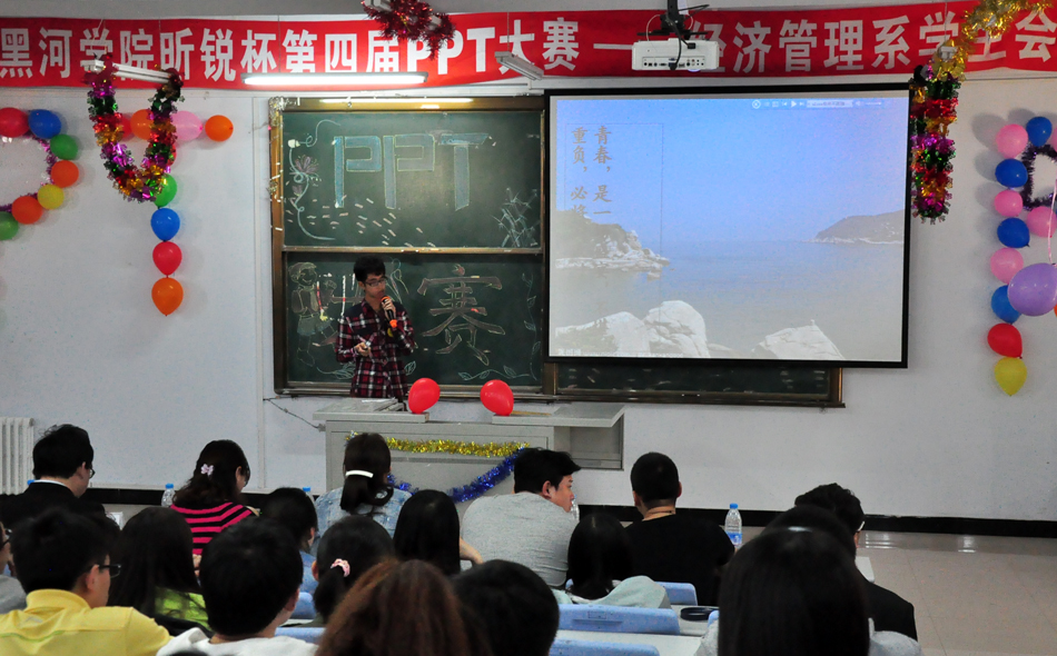 本网讯(大学生记者团 牟广超)4月25日下午,由经济管理系学生会举办的“昕锐杯”第四届PPT大赛总决赛,在教学楼B508教室进行。