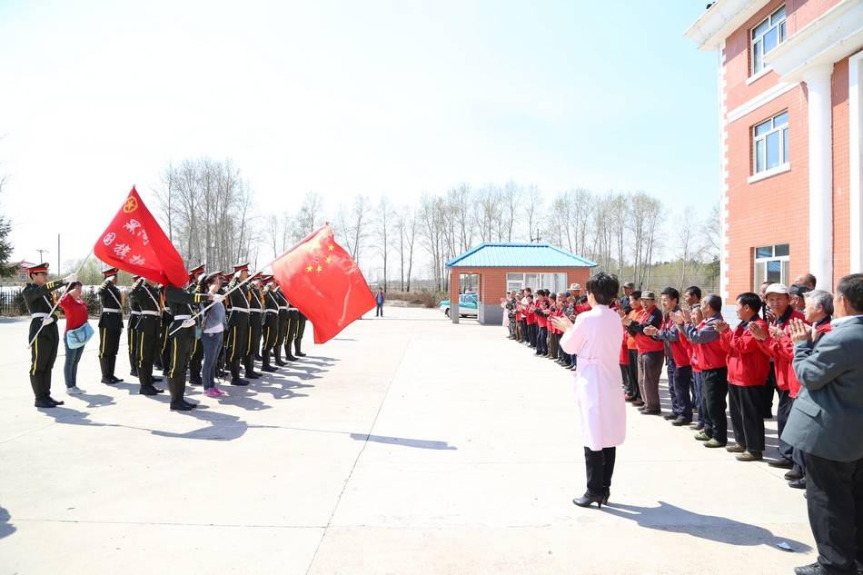 本网讯(特约记者 梁云婴)4月27日,黑河学院大学生国旗护卫队为来自黑河市福利院的30多名孤儿举行了一场特殊的升旗仪式。升旗结束后,护卫队的同学们来到黑河市爱辉区中心敬老院,为老人们表演军体拳等节目,奉献一片爱心。