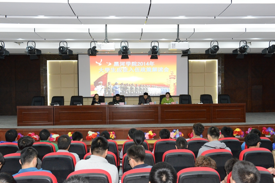 会上,爱辉区武装部参谋邹环宇少校,学院招生就业处副处长、学生资助中心主任分别从征兵要求、 应征具体报名流程、学费补偿、贷款代偿、部队待遇及复员安排等方面做了详细解读。