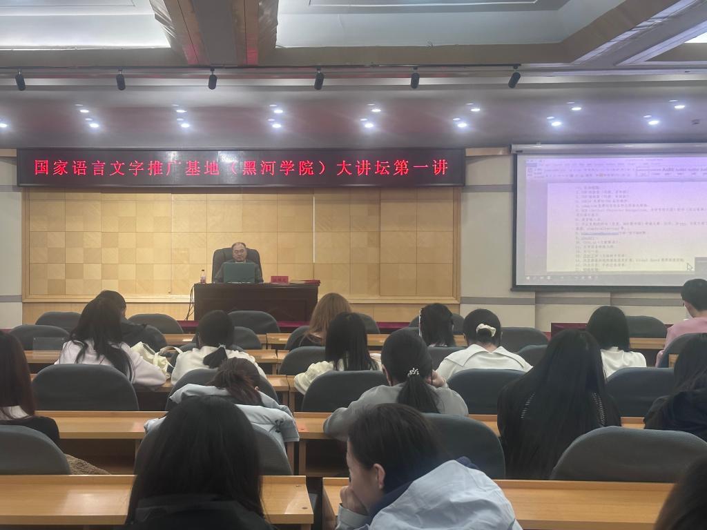 3月27日,2026年国家语言文字推广基地(黑河学院)大讲坛首讲在明德楼五楼多功能厅正式开讲。本次讲座特邀张伟光教授担任主讲,全校各教学单位授课教师共同参与此次专题培训。